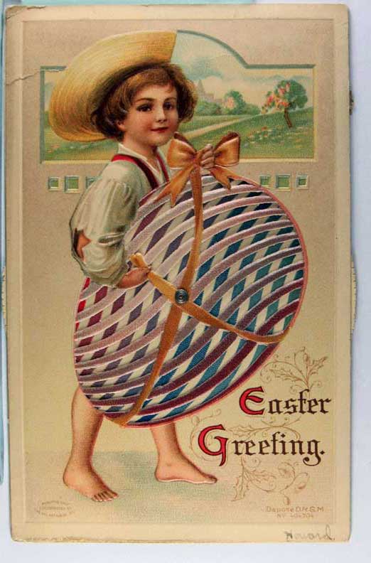 Card # 187286. View Larger | Rotate Novelty Mechanical Kaleidoscope, Int. Art Pub., Art by Ellen Clapsaddle, Easter, Used DB emb m wear & wof F-VF
