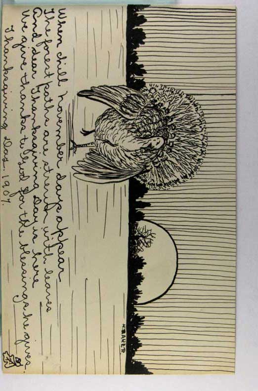 Card # 187288. View Larger | Rotate Novelty Hand-Drawn, Thanksgiving, Dated 1907 VF