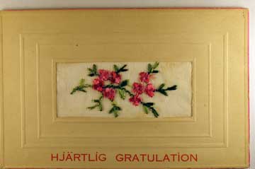 Card # 23642. View Larger | Rotate Embroidered Silk, “Best Wishes”, Quality Card DB some edge creases F-VF
