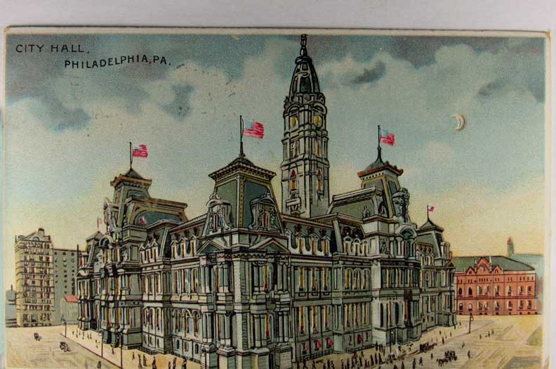 Card # 160483. View Larger | Rotate Hold to the Light, Die-Cut, Philadelphia, “City Hall”, Used 1912 DB m cor wear F-VF