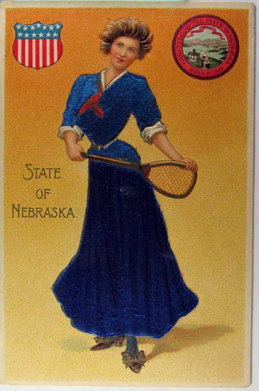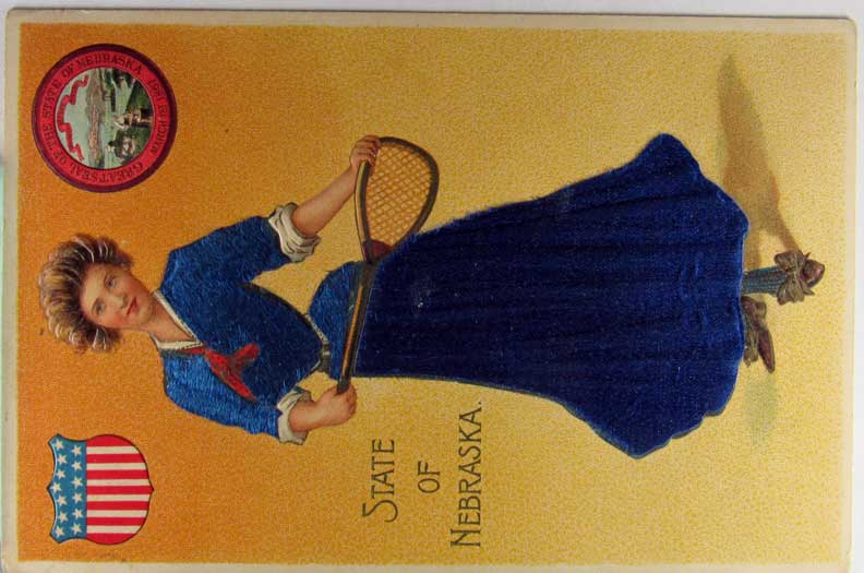 Card # 151741. View Larger | Rotate State Ladies Ser. w/ Novelty Silk Add On, “Nebraska” DB emb VF