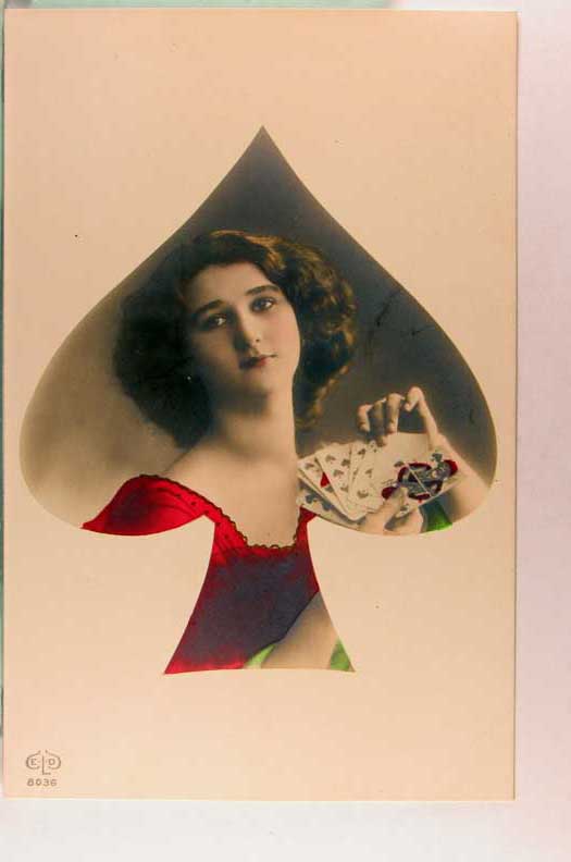 Card # 195373. View Larger | Rotate Pretty Lady w/ Playing Cards, Tinted Real Photo, #8036 DB VF