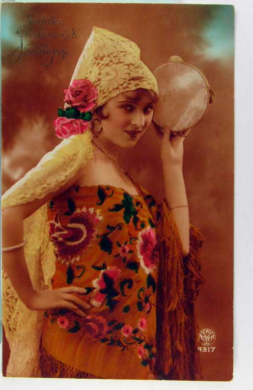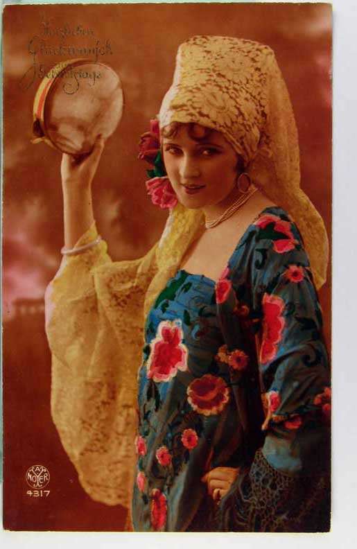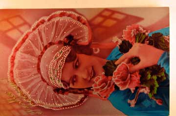 Card # 40637. View Larger | Rotate Tinted Photogravure by Reutlinger, “Sorrano”, w/ Attractive Glitter Added, Used, Very Nice UB VF