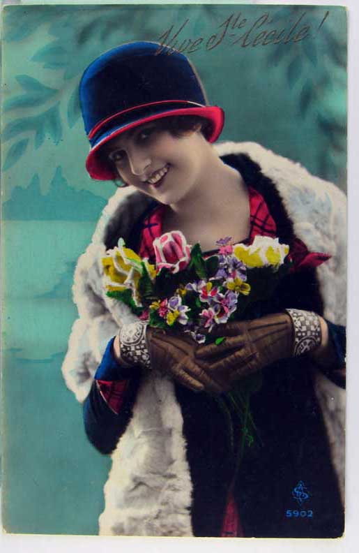 Card # 185949. View Larger | Rotate Pretty Lady, French Tinted Real Photo, #5902, “Vive St. Cecile”, Used 1926 VF