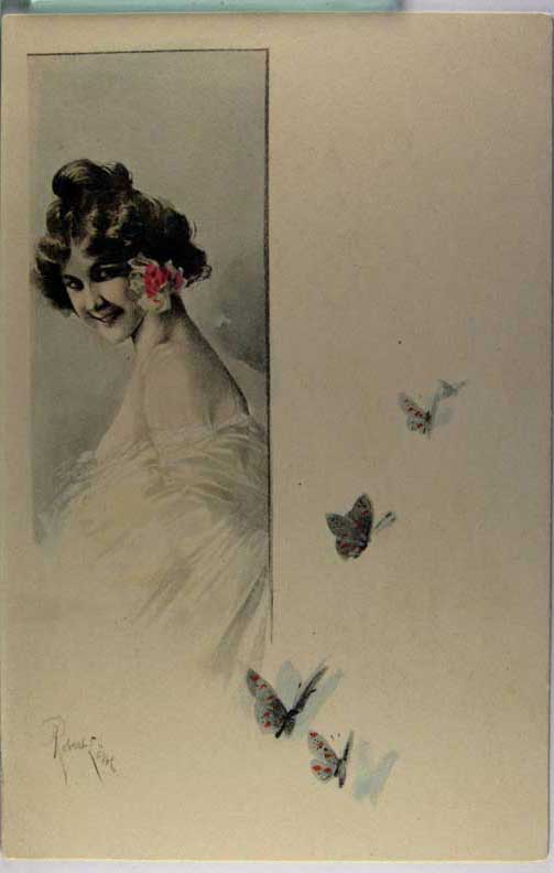 Card # 113840. View Larger | Rotate Pretty Lady, German Pub., Series #1500 DB emb cor cr & wear F-VF
