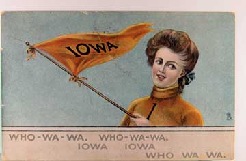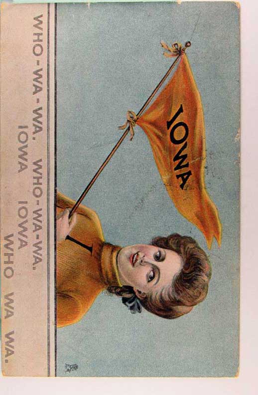 Card # 187883. View Larger | Rotate College Ladies Ser., “Iowa”, R. Tuck Pub., Ser. #2628, Used 1910 DB cor wear Near F-VF