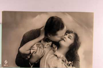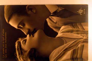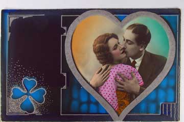 Card # 124039. View Larger | Rotate Fancy French Tinted Photo, Kissing Couple In Heart, P.C. Paris VF