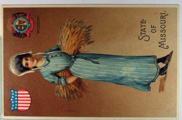 Card # 123331. View Larger | Rotate State Ladies Ser., “State of Missouri”, German Pub., Used 1908 DB emb Near VF