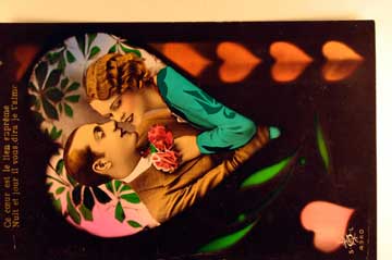 Card # 12082. View Larger | Rotate Couple, French tinted photo w/ Hearts, SOL # 4360, very nice near VF