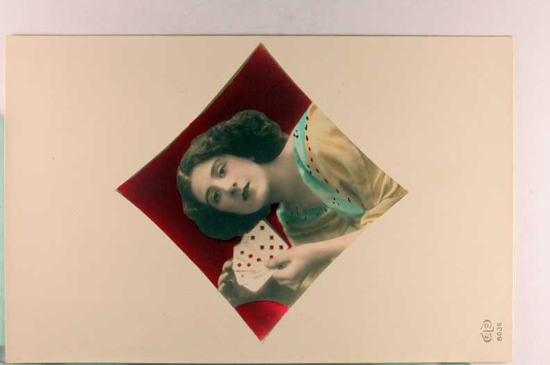 Card # 195374. View Larger | Rotate Pretty Lady w/ Playing Cards, Tinted Real Photo, #8036 DB VF