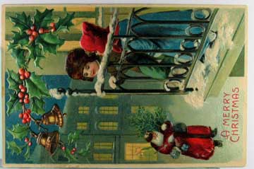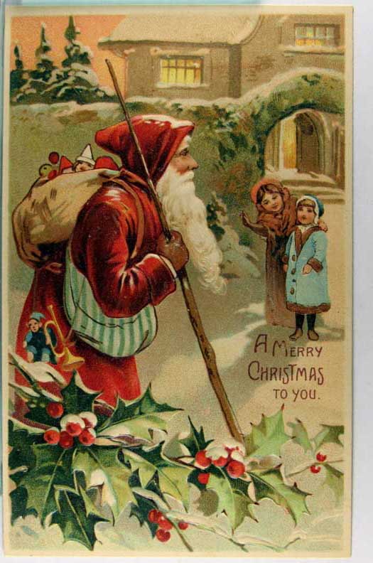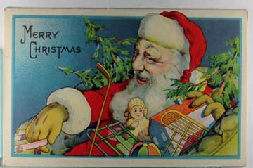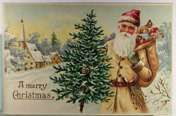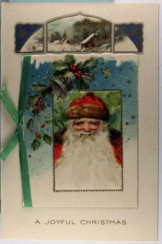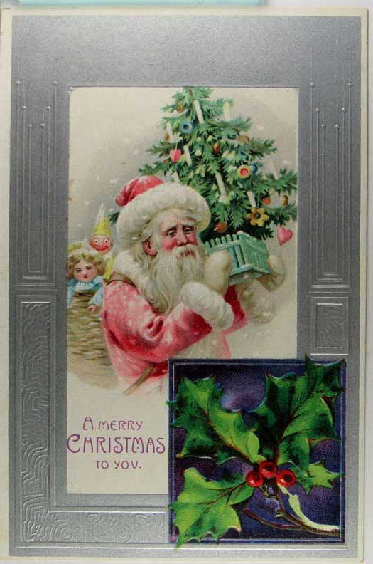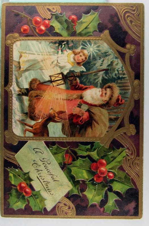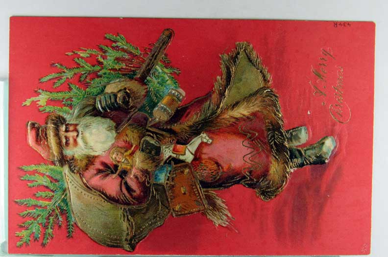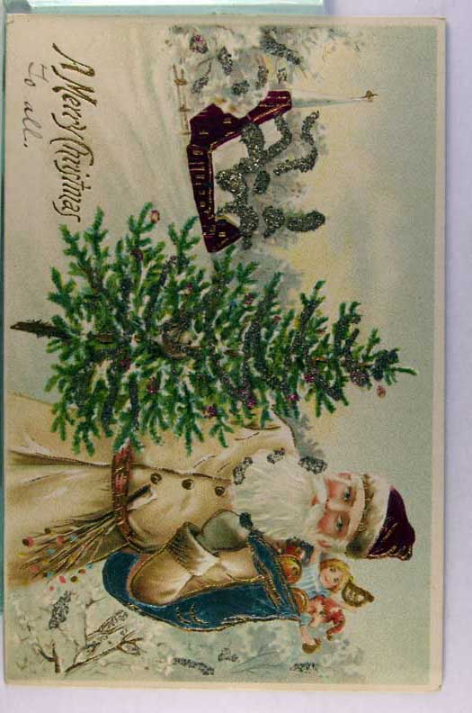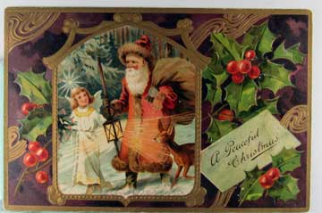 Card # 175427. View Larger | Rotate Red Suited Santa w/ Angel UB m tinsel VF