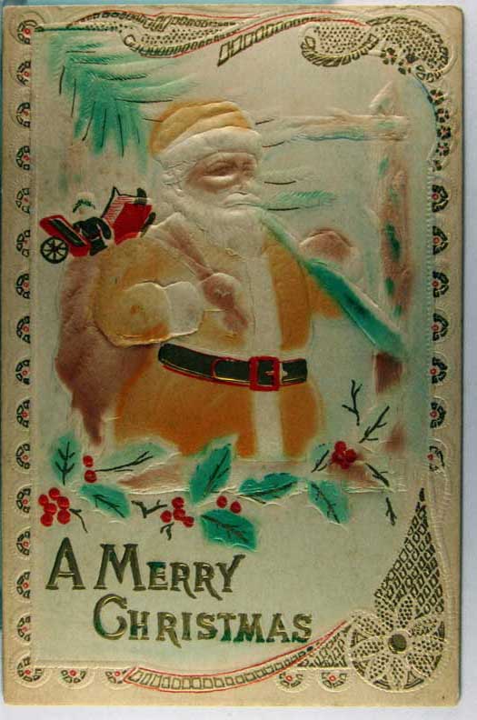 Card # 171758. View Larger | Rotate Brown Suited Santa, Used 1908 DB emb m cor & edge wear F-VF