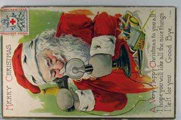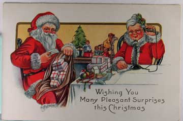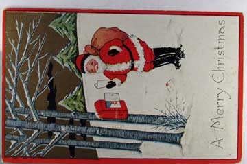Card # 125229. View Larger | Rotate Red Suited Santa w/ Telephone, C-234, used 1917 incl. Christmas Seal emb cor crs F