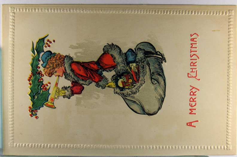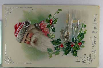 Card # 157640. View Larger | Rotate Red Suited Santa, PFB Pub., #7312 DB emb m flts F