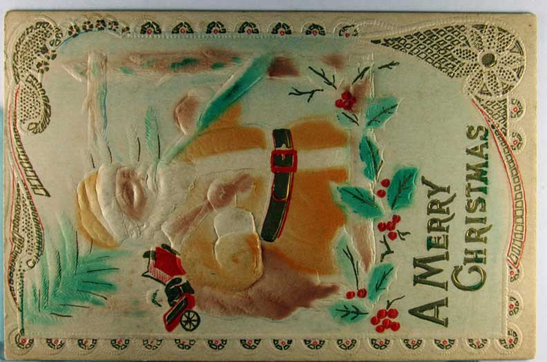 Card # 193726. View Larger | Rotate Red Suited Santa w/ Silk Add-Ons DB emb cor wear Near F-VF