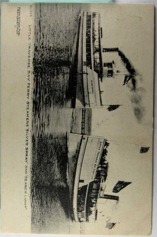 Card # 150315. View Larger | Rotate Ferries, “Silver Spray & Search Light”, Traverse Bay, Michigan, Photogravure, Used 1907 m cor wear Near VF