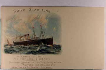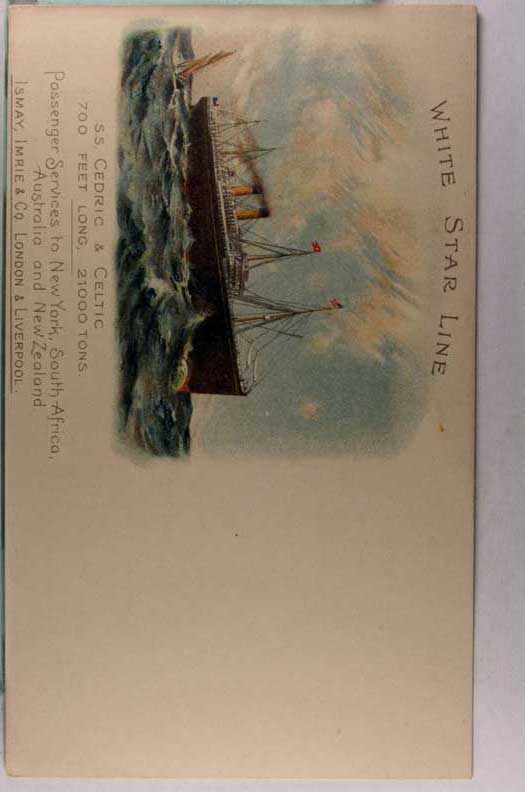 Card # 162401. View Larger | Rotate Adv. White Star Line, SS Cedric & Celtic PMC VF