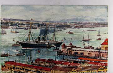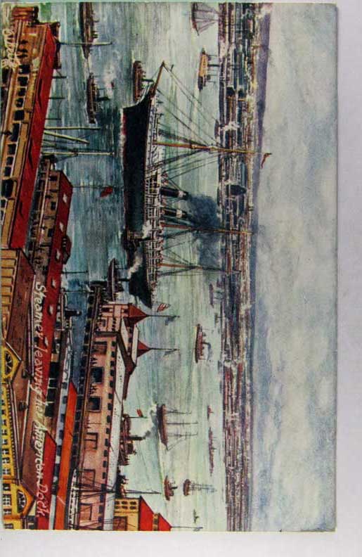 Card # 185636. View Larger | Rotate Shipping Related, R. Tuck Pub., A Trip to Europe Ser. #2908, “Steamer Leaving Her American Dock” DB VF