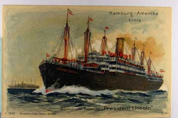 Card # 190244. View Larger | Rotate Adv. Hamburg-Amerika Line, “President Lincoln”, #955 DB m cor wear VF
