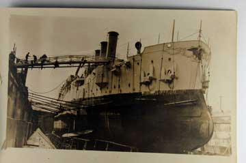 Card # 150634. View Larger | Rotate U.S.S. Kansas In Dry Dock, Real Photo w/ AZO P.C. back Near VF