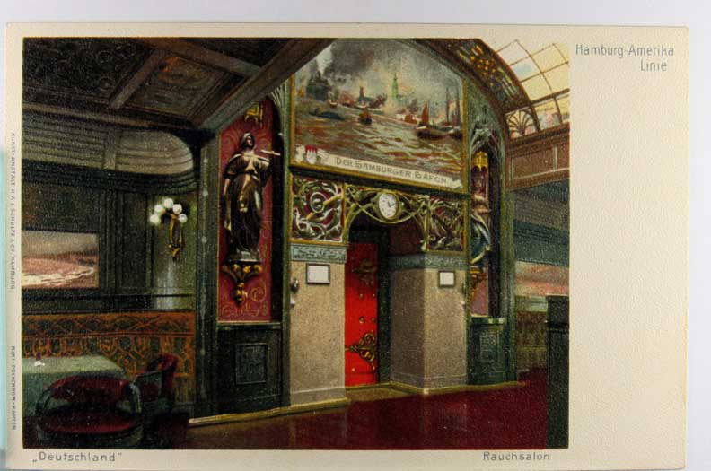 Card # 190262. View Larger | Rotate Adv. Hamburg-Amerika Line, “Deutschland”, Interior View UB VF