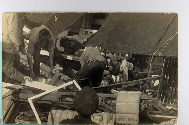 Card # 190501. View Larger | Rotate Steamer Columbia Disaster, Real Photo w/ AZO P.C. back, Macabre Removing Bodies F-VF