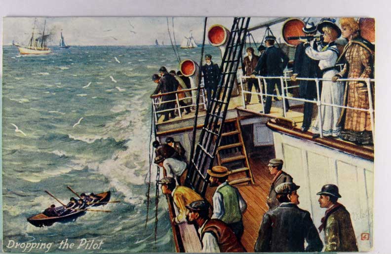 Card # 185637. View Larger | Rotate Shipping Related, R. Tuck Pub., A Trip to Europe Ser. #2908, “Dropping the Pilot” DB m cor album marks VF