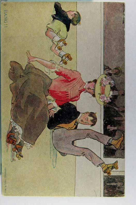 Card # 193838. View Larger | Rotate Roller Skating Ser. #3, cpr. R. Hill 1907, Art. Sig. Brill, “Bang!!” DB VF