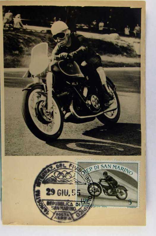 Card # 193847. View Larger | Rotate 1955 Olympics, Motor Cycle Racing Related, CTO w/ San Marino Stamp & Cancel VF