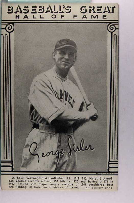 Card # 179244. View Larger | Rotate Baseball, Baseball’s Great Hall of Fame Ser., George Sisler, Arcade Card w/Non P.C. back m cor wear VF