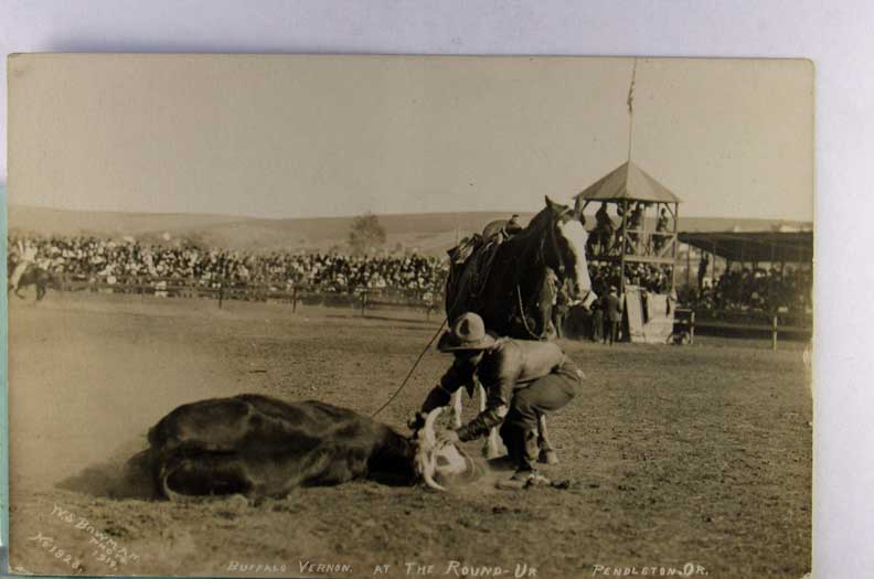 Card # 184724. View Larger | Rotate Rodeo, Real Photo by W.S. Bowman w/ AZO P.C. back, #1828, “Buffalo Vernon...” VF