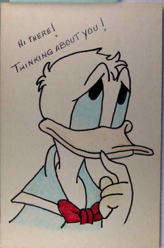 Card # 147410. View Larger | Rotate Disney, Donald Duck, Novelty Hand Drawn, Dated 1983 VF