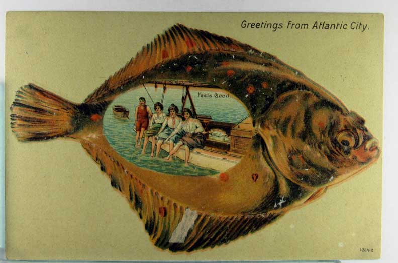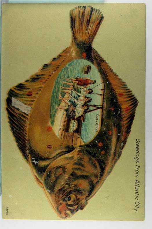 Card # 195387. View Larger | Rotate Fish Border, New Jersey, Atlantic City, #13142 DB emb m cor wear Near VF