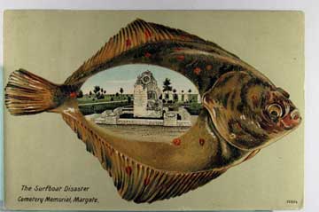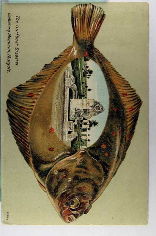 Card # 195388. View Larger | Rotate Fish Border, “The Surfboat Disaster”, Margate, Kent, #12884 DB emb m cor crs F-VF