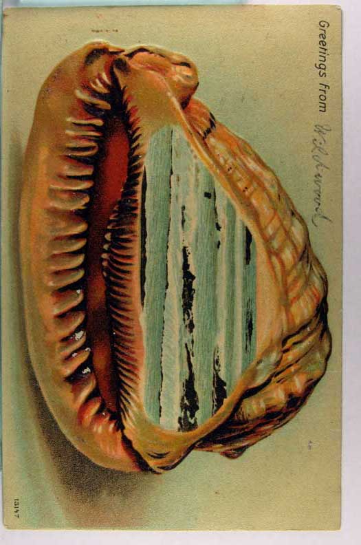 Card # 182737. View Larger | Rotate Shell Border, Schwalbach Pub., Salisbury Beach, Mass., Used 1907 DB emb F-VF