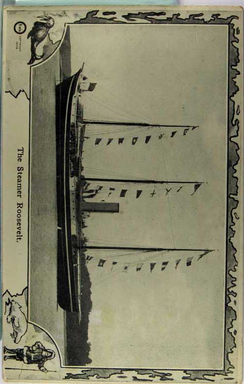 Card # 186635. View Larger | Rotate Polar Exploration Related, “Steamer Roosevelt”, Used 1913 DB m wear F-VF