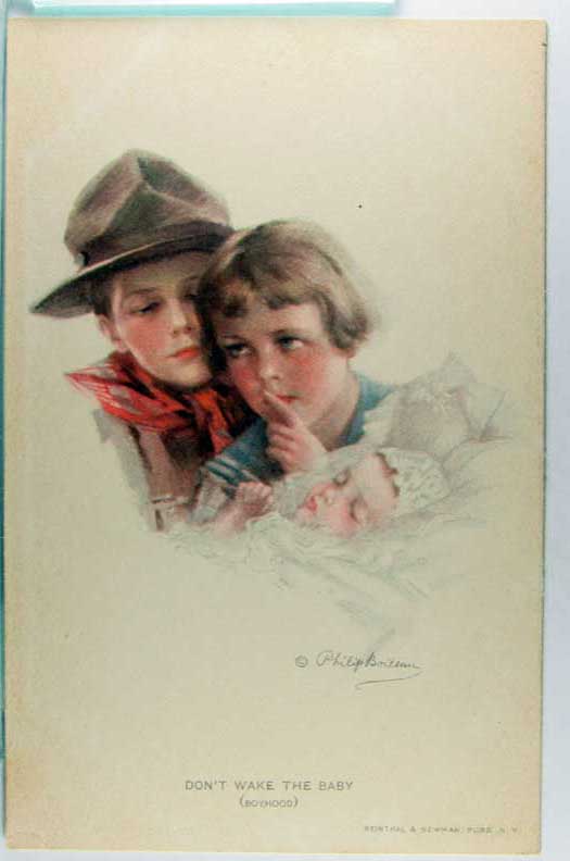 Card # 176559. View Larger | Rotate Boy Scout, Art. Sig. Boileau, R&N Pub., “Don’t Wake the Baby”, #380 DB m cor album marks Near VF