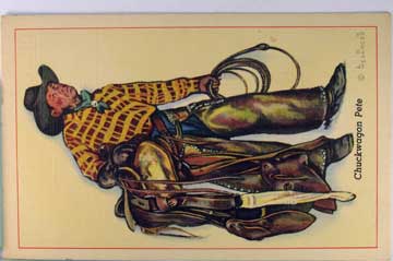 Card # 124093. View Larger | Rotate Cowboy Art Ser. By Lon Megargee, "Chuckwagon Pete", Curteich Linen VF