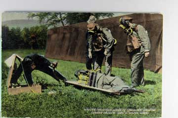 Card # 133184. View Larger | Rotate Mining Related, “Oxygen Helmets Used in Rescue Work”, Tinted Printed Photo, Used 1914 DB m cor wear Near VF