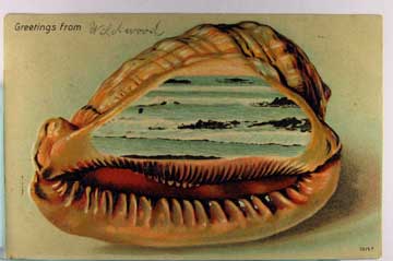 Card # 196632. View Larger | Rotate Shell Border, “Wildwood”, Used 1907 DB emb m wof F-VF