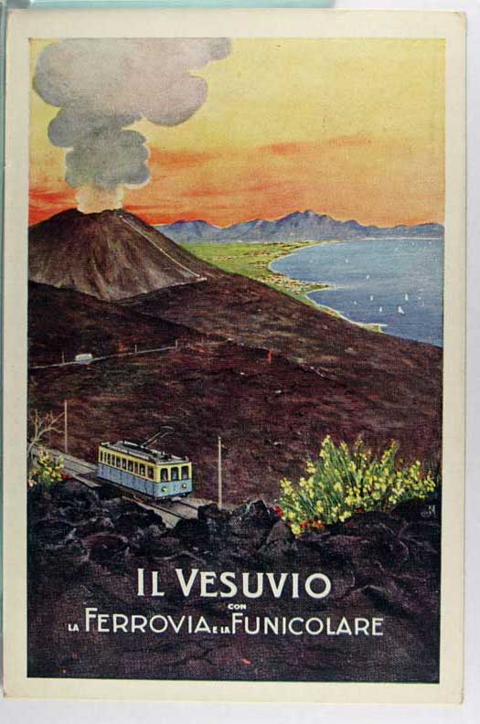 Card # 171214. View Larger | Rotate Poster Card Adv. Italian “Il Vesuvio” Funicular Railroad, Used 1937 m wear Near VF
