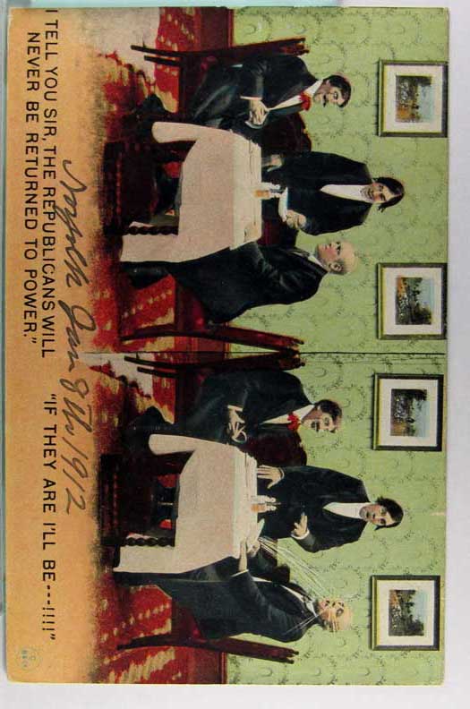 Card # 188908. View Larger | Rotate U.S. Political Comic, “ Republicans Will Never Be Returned To Power”, Dated 1912 DB wof Near VF