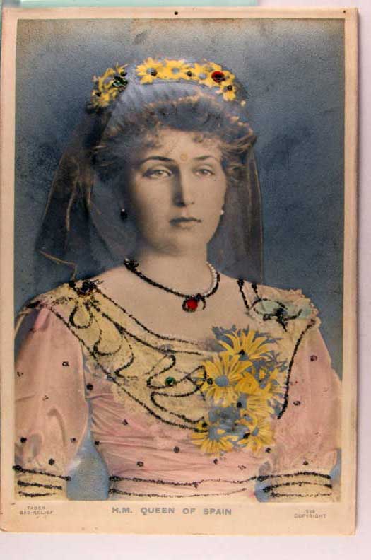 Card # 197344. View Larger | Rotate Spanish Royalty, Bas-Relief Tinted Real Photo, “HM Queen” DB VF