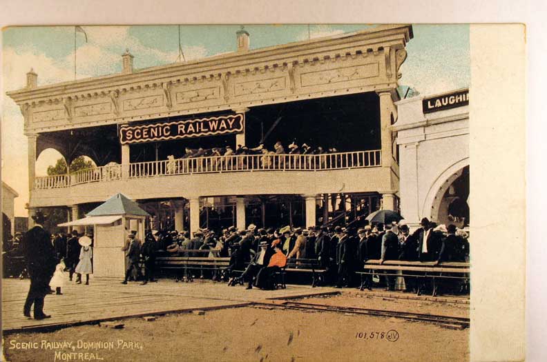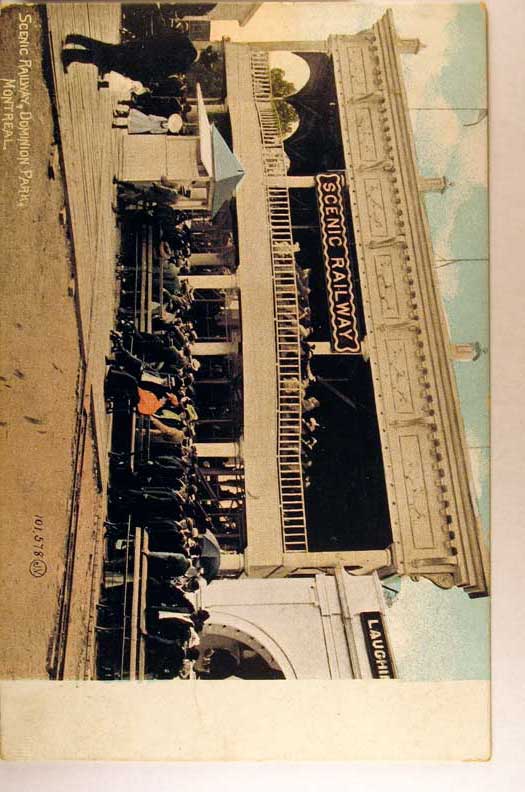 Card # 6922. View Larger | Rotate Canada, Montreal, Scenic railway, Dominion Park, Color, Used w/ Purple Boxed St. Johnsbury, VT 1914 Cancel DB F-VF