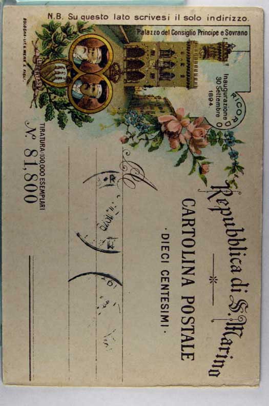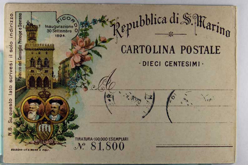 Card # 178912. View Larger | Rotate San Marino, 1894 Dieci Centesimi Postal Card, CTO F-VF