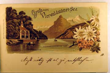 Card # 70861. View Larger | Rotate Switzerland, Gruss vom Vierwaldstatter-See, Early Quality Card, Carl Kunzli #20 UB m wof & m cor album marks VF