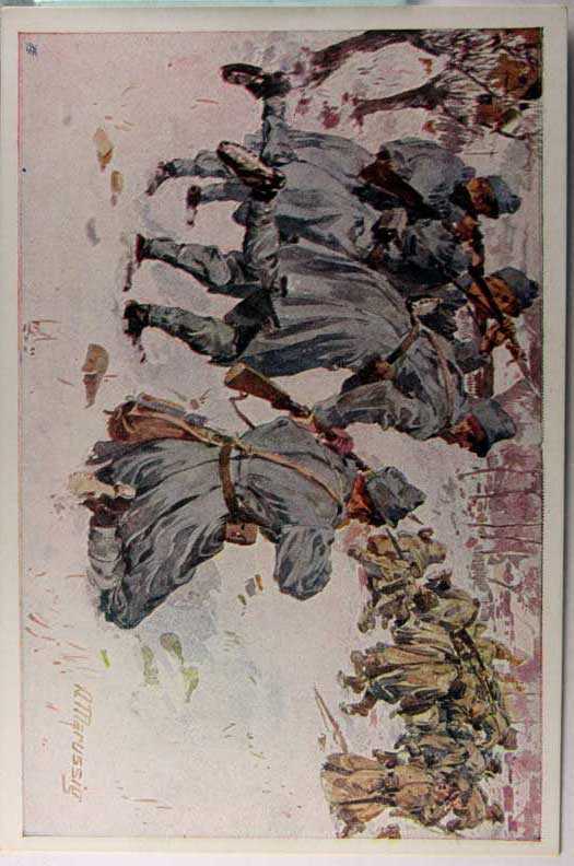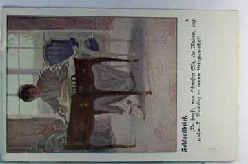 Card # 28380. View Larger | Rotate W.W. I German pub. Wohlfahrtskarte, Art. Sig., B&W, used 1915 w/ Military Cancel G-F