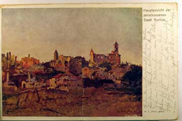 Card # 61731. View Larger | Rotate W.W. I Austrian Official Red Cross ser., # 219, Gorlice, used 1917 w/ Purple Feldpost Marking major crease & wof