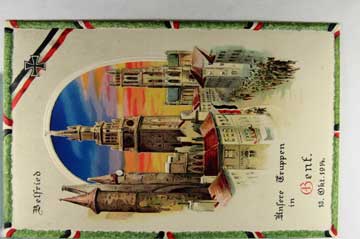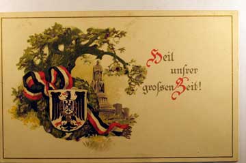 Card # 72680. View Larger | Rotate W.W. I German Patriotic w/ Crest and Banner, used 1916 w/ Feldpost Usage near F-VF
