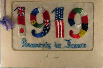 Card # 163566. View Larger | Rotate W.W. I, French Pub., Novelty Embroidered Silk, w/ 1919 Year Date, Booklet w/ Non P.C. back Near VF